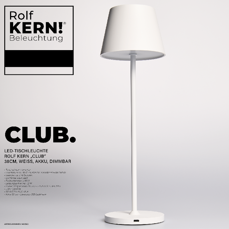 Weiterführende Links zu "LED-Tischleuchte ROLF KERN „Club“ 38cm, weiß, Akku, dimmbar"