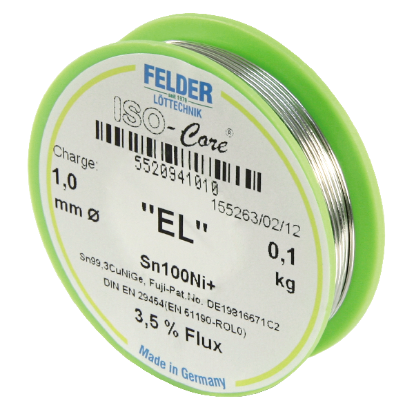 Produktinformationen "Lötzinn auf Rolle FELDER ISO-Core "EL", 1,0mm, 100g, bleifrei (Sn100%Ni+)"