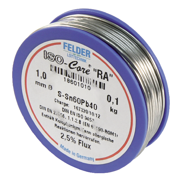 Produktinformationen "Lötzinn auf Rolle FELDER ISO-Core "RA", 1,0mm, 100g, bleihaltig (60%Sn 40%Pb)"