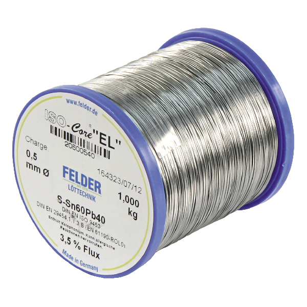 Produktinformationen "Lötzinn auf Rolle FELDER ISO-Core "EL", 0,5mm, 1.000g, bleihaltig (60%Sn 40%Pb)"