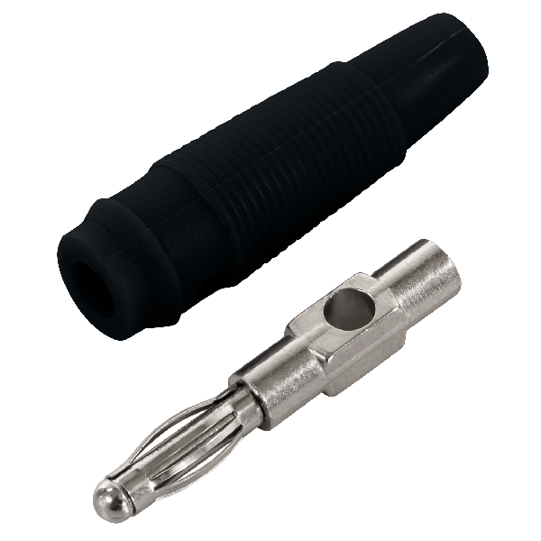 Produktinformationen "Bananen-Stecker McPower, 4 mm, Querloch, Druckfeder, schwarz"