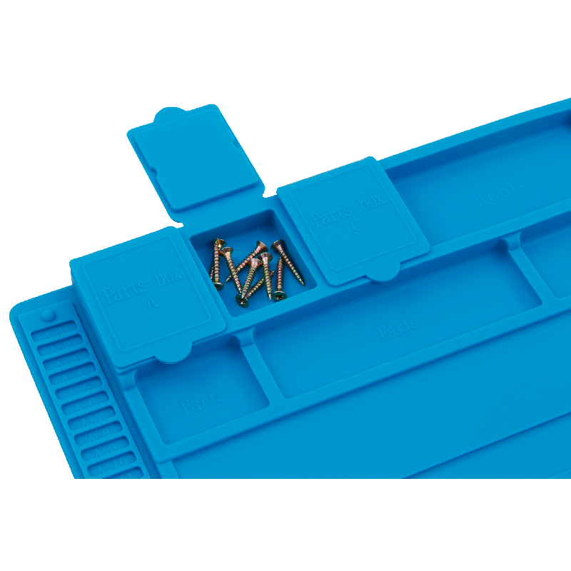 • 14 Ablagefächer (3 davon magnetisch) und 42 kleine Ablagen für kleinere Bauteile oder Schrauben sowie 124 SMD Bauteilfächer
