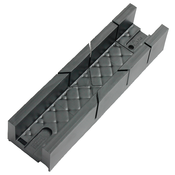 • zwei Einschnitte für Gehrungsschnitte von 45°