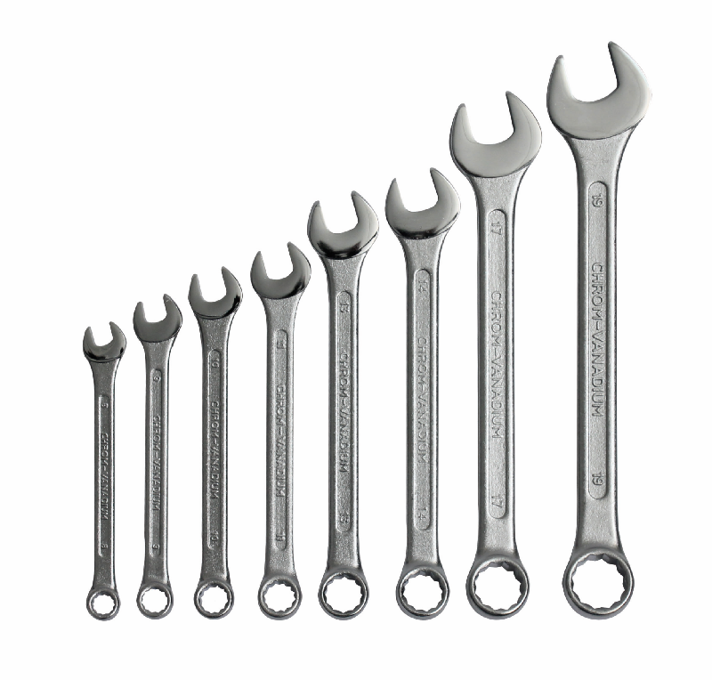 Weiterführende Links zu "Ring-Gabelschlüsselsatz 8-teilig, 8-19mm, Cr-V, verchromt"