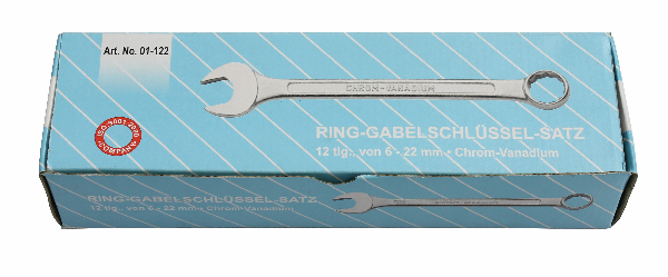 Produktinformationen "Ring-Gabelschlüsselsatz 12-teilig, 6-22mm, Cr-V, verchromt, DIN3113"