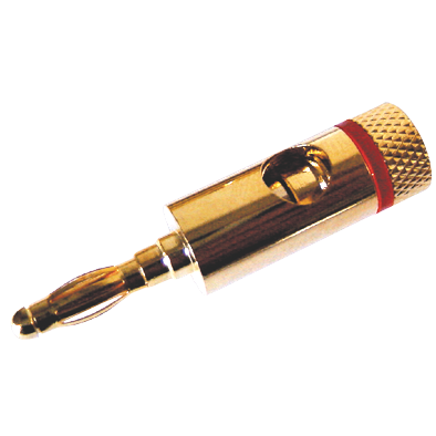 Produktinformationen "Laborstecker, 4mm-Ø, vergoldet, mit rotem Kennzeichnungsring"